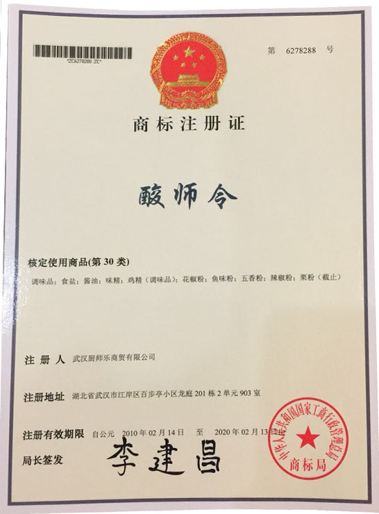 武汉鲜师令农产品加工有限公司是一家以生产调味品及农副产品加工为主的集生产、研发、销售于一体的企业。公司位于武汉阳逻经济开发区华中产业园内,环境优美,交通发达;公司自组建以来,非常注重知识产权的建设和保护,现有“鲜师令”、“麻师令”、“辣师令”、“酸师令”、“1717”、“品师令”、“卤师令”、“鑫师令”、“礼师令”、“龟鹤齐龄”等近30个自主品牌,以及6个外观专利和2个国家级发明专利,形成了具有独立知识产权的品牌体系,为公司长远发展奠定了坚…